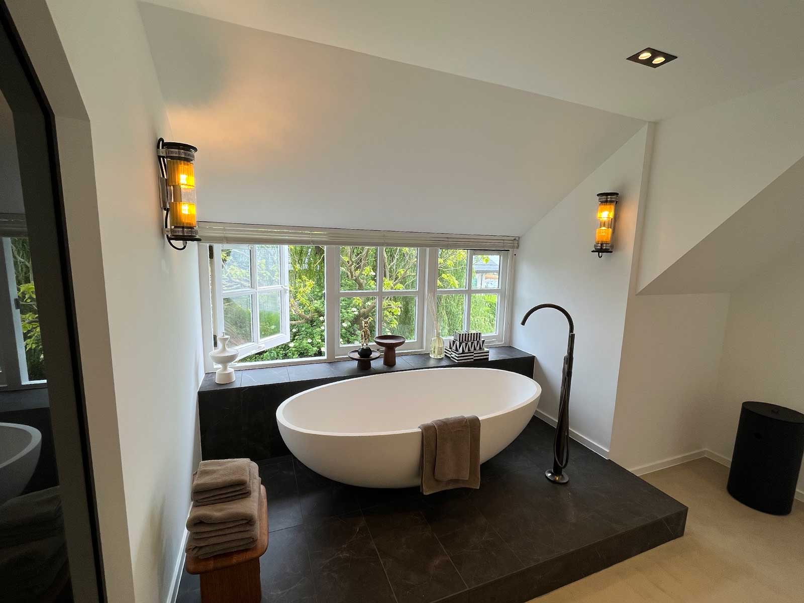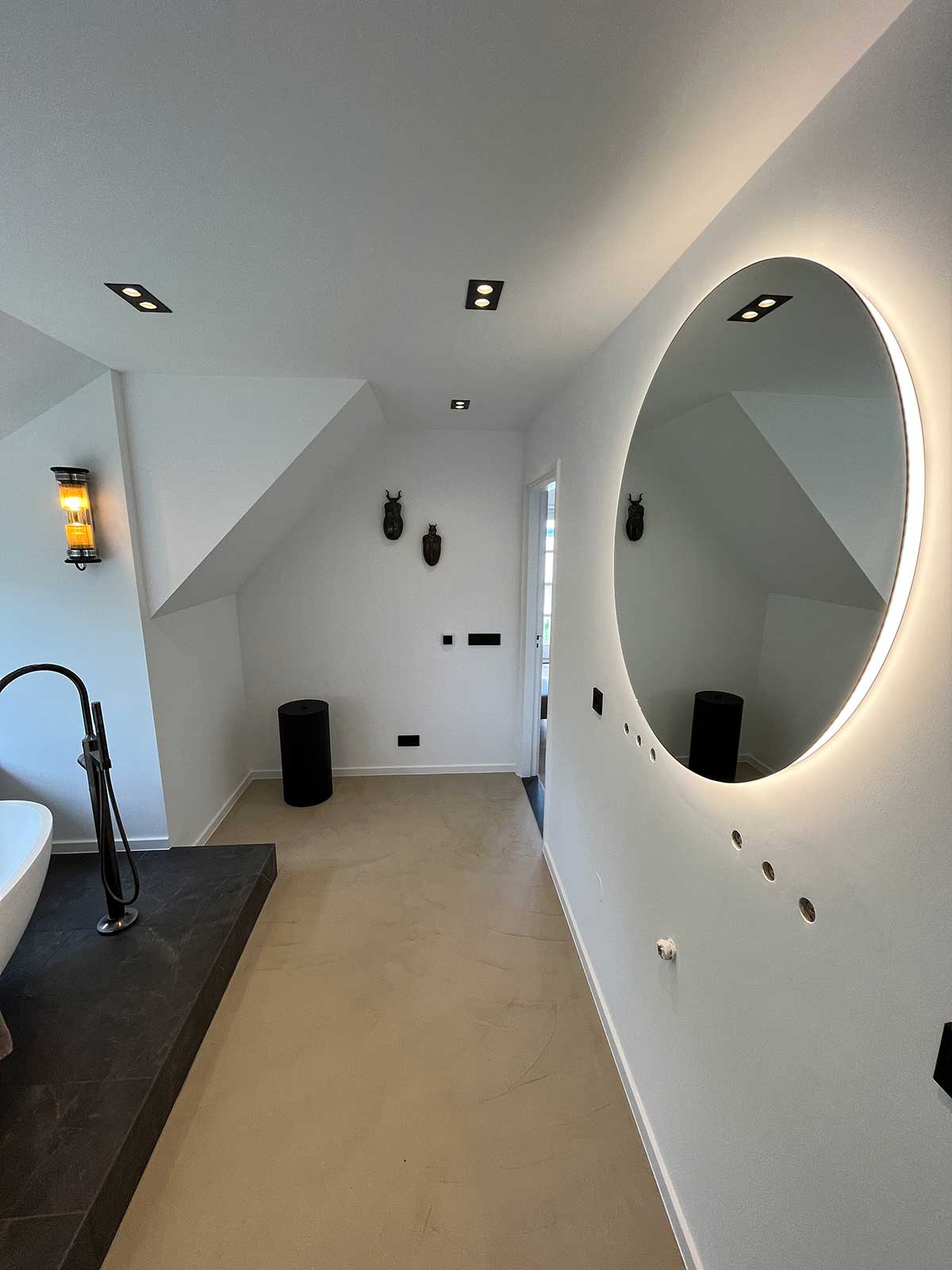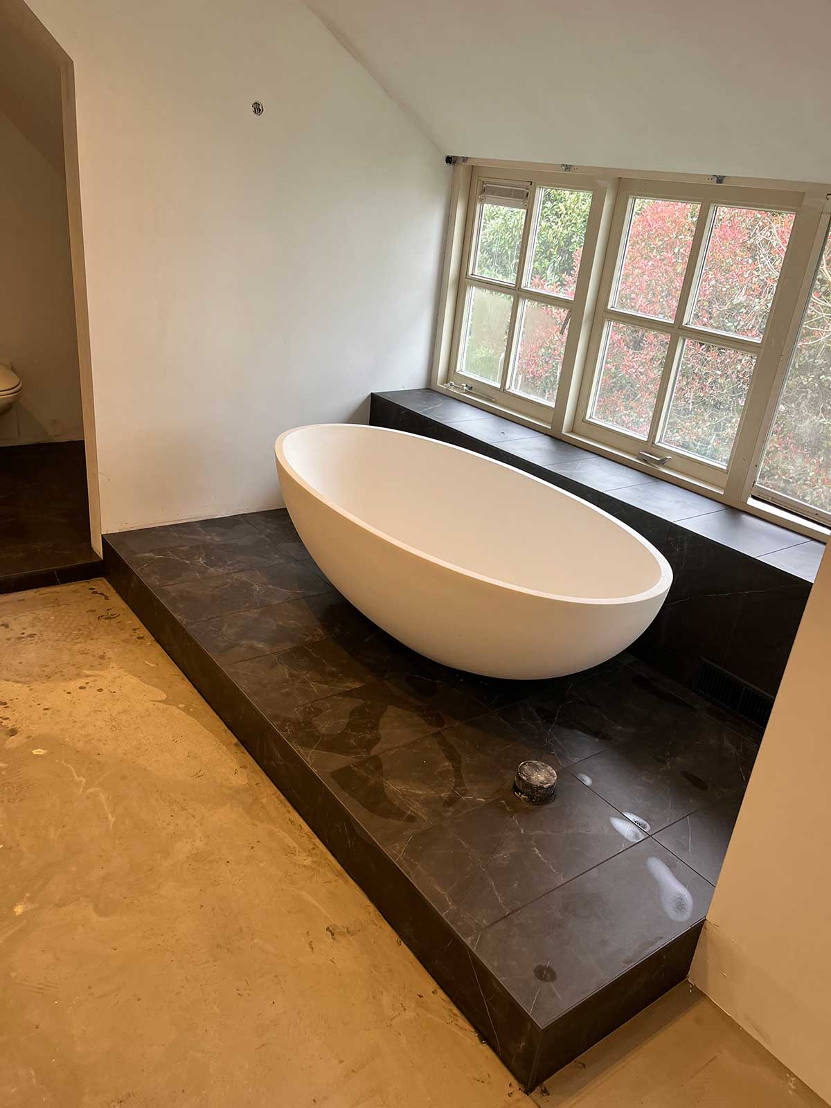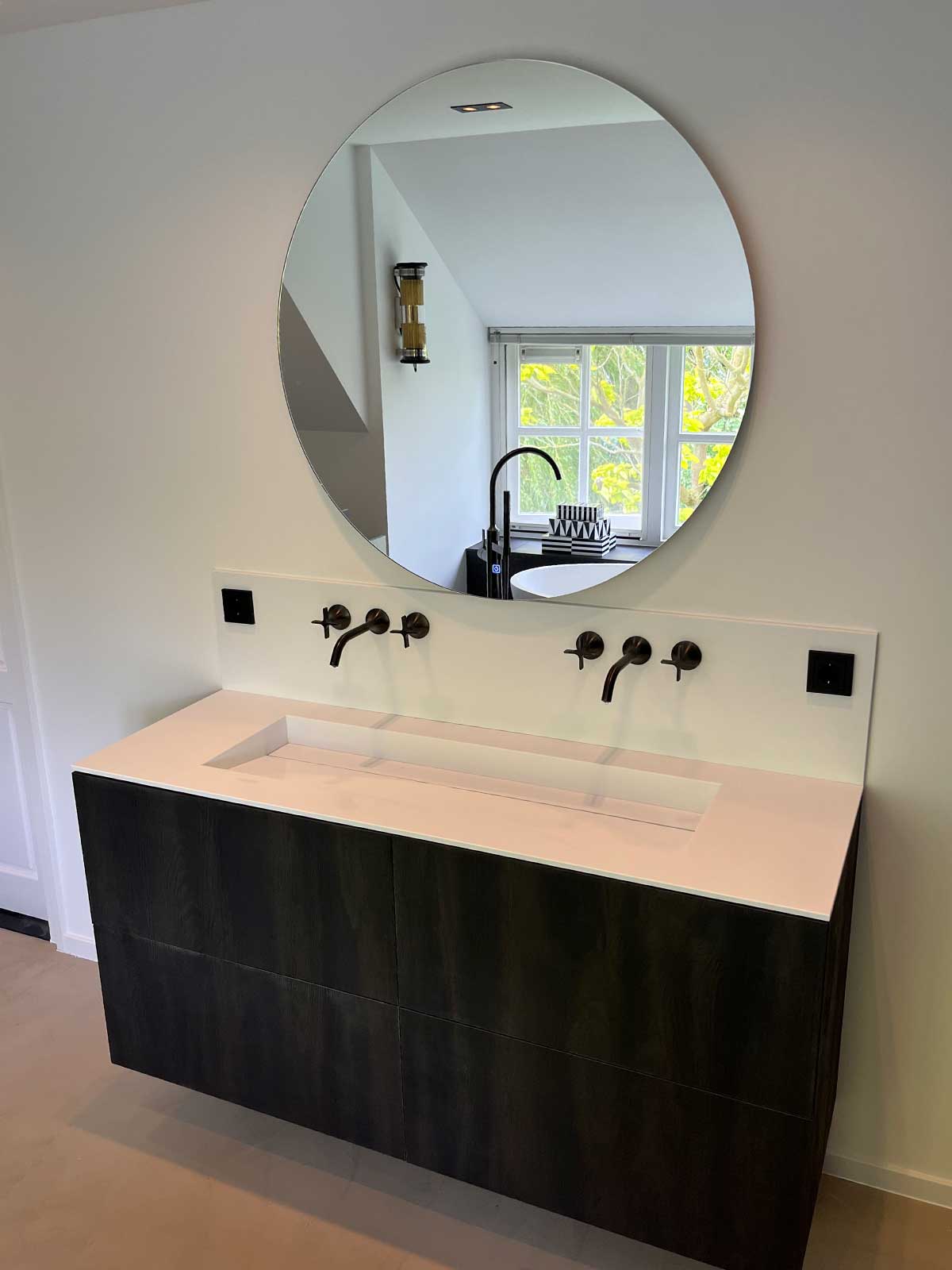 Badkamer gerenoveerd en vergroot, elektrische vloerverwarming en beton Cire op de vloer