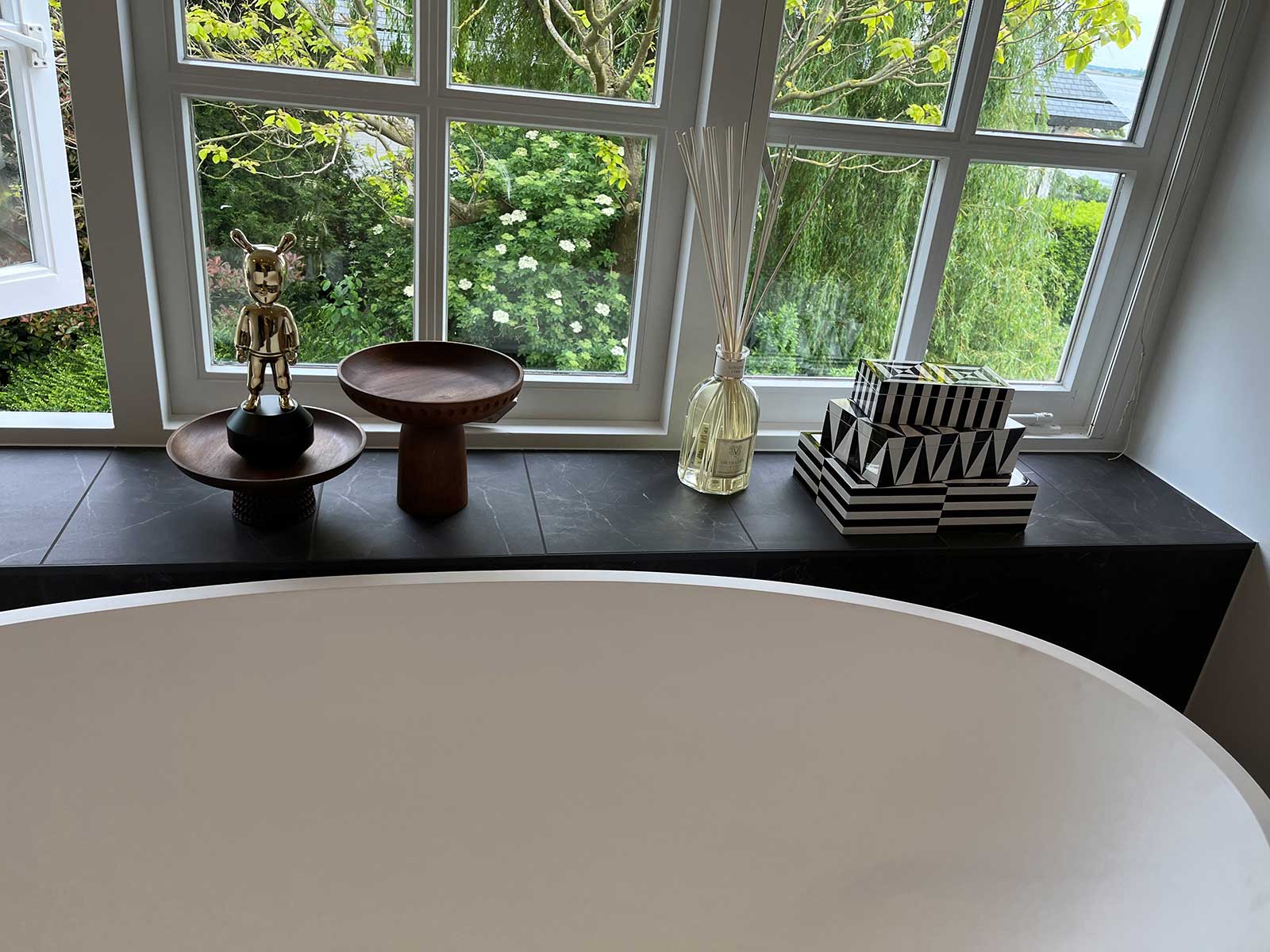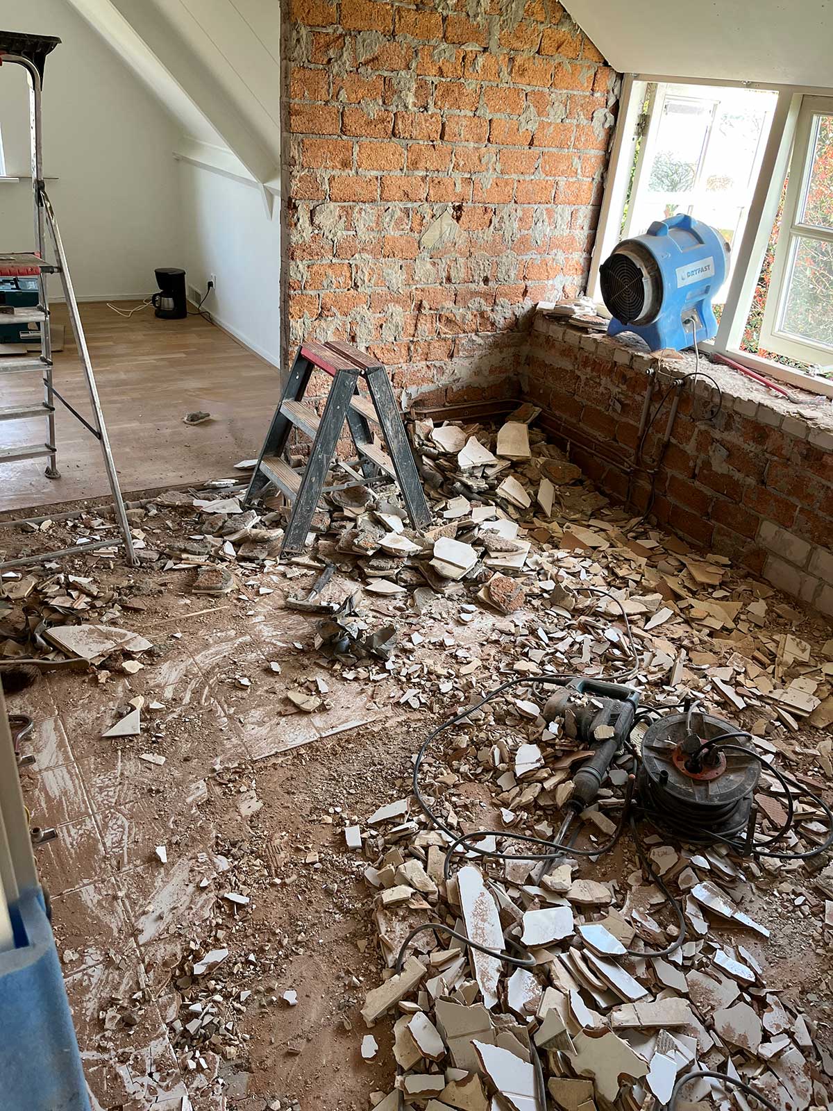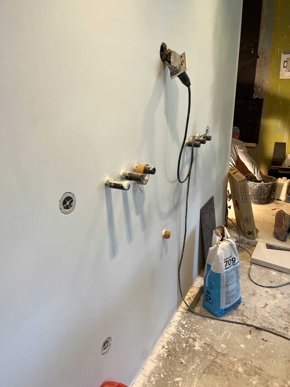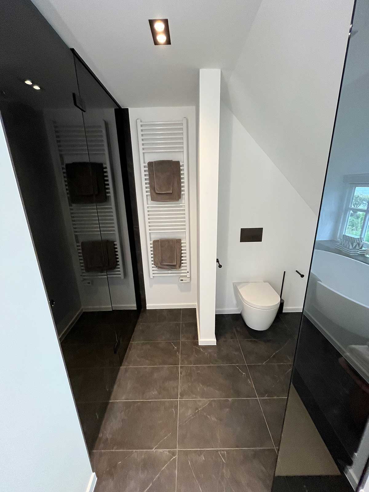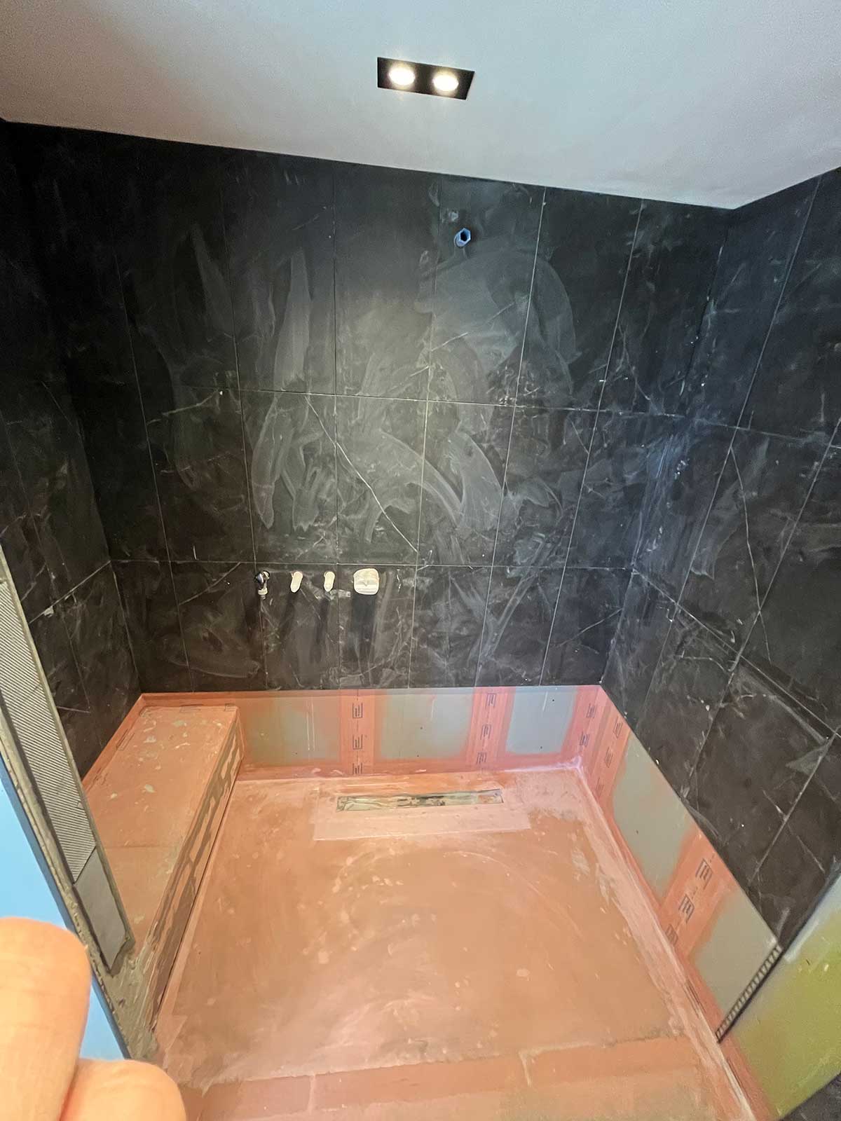 Badkamer gerenoveerd en vergroot, elektrische vloerverwarming en beton Cire op de vloer