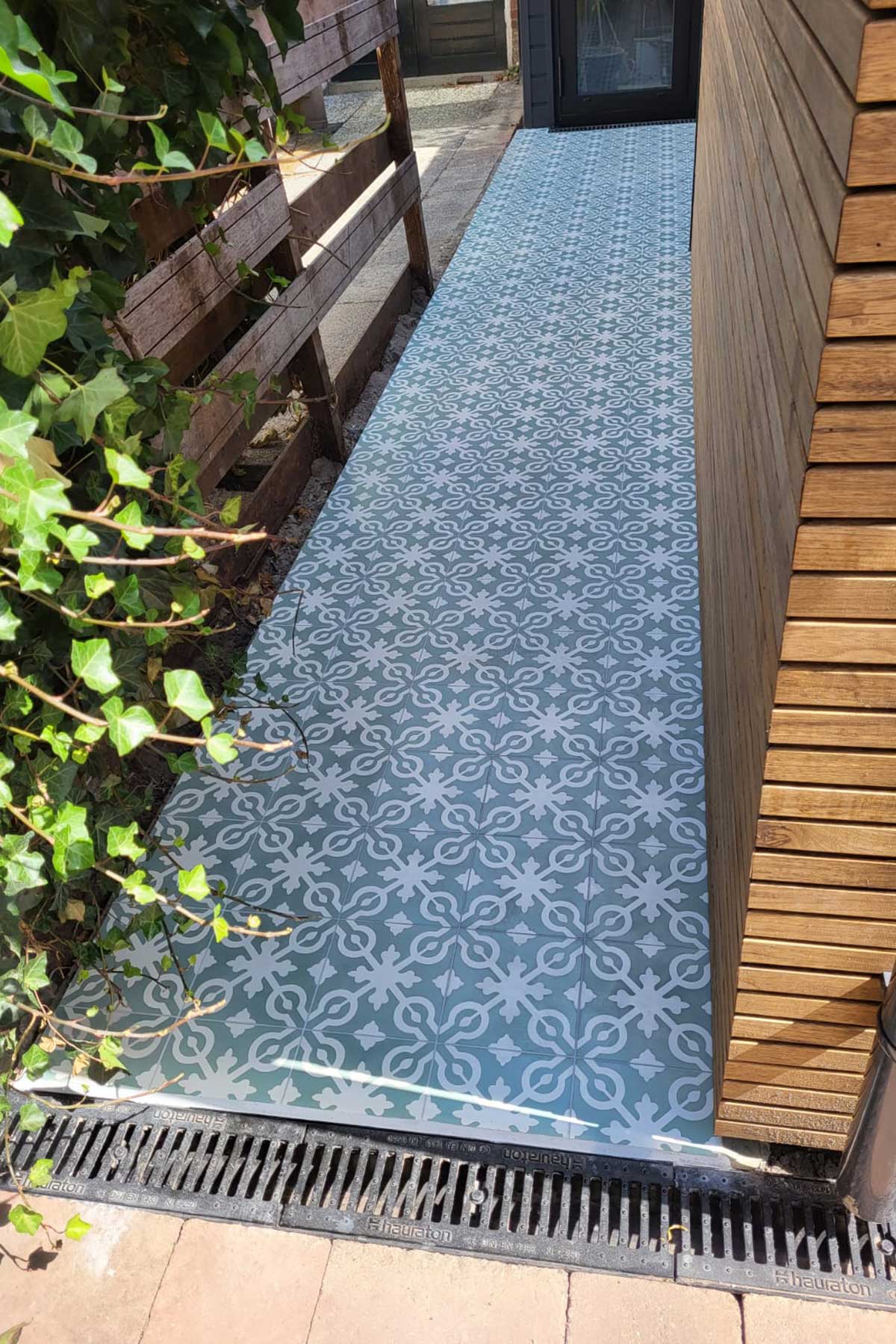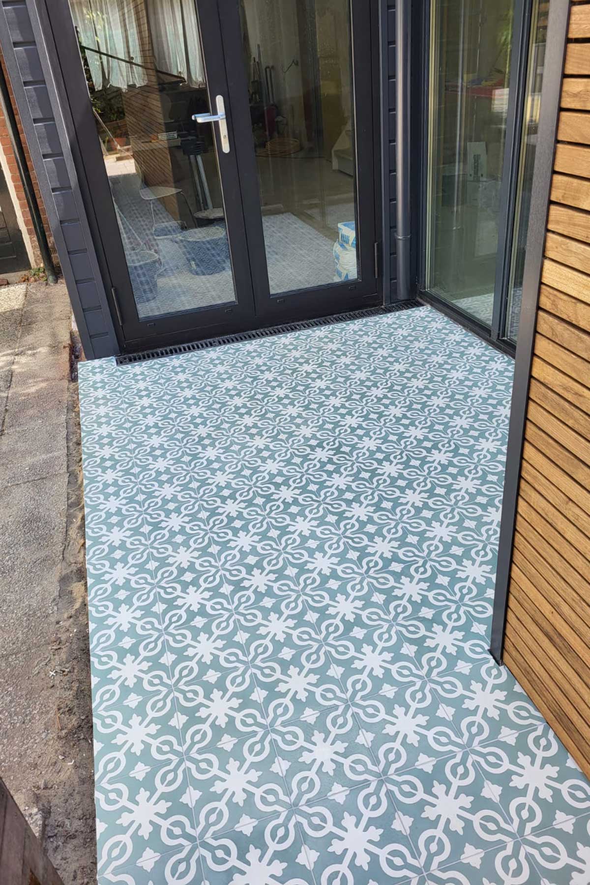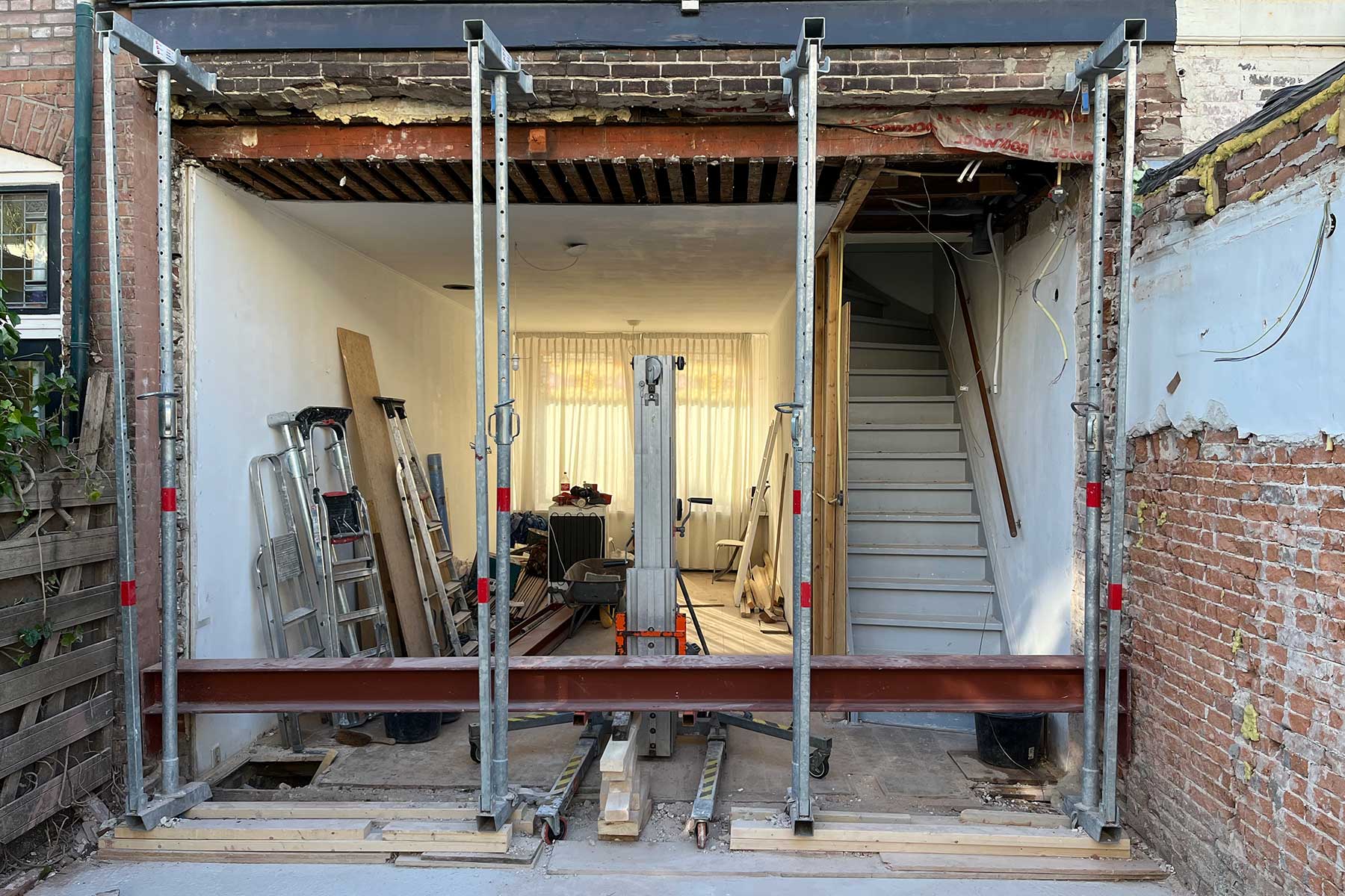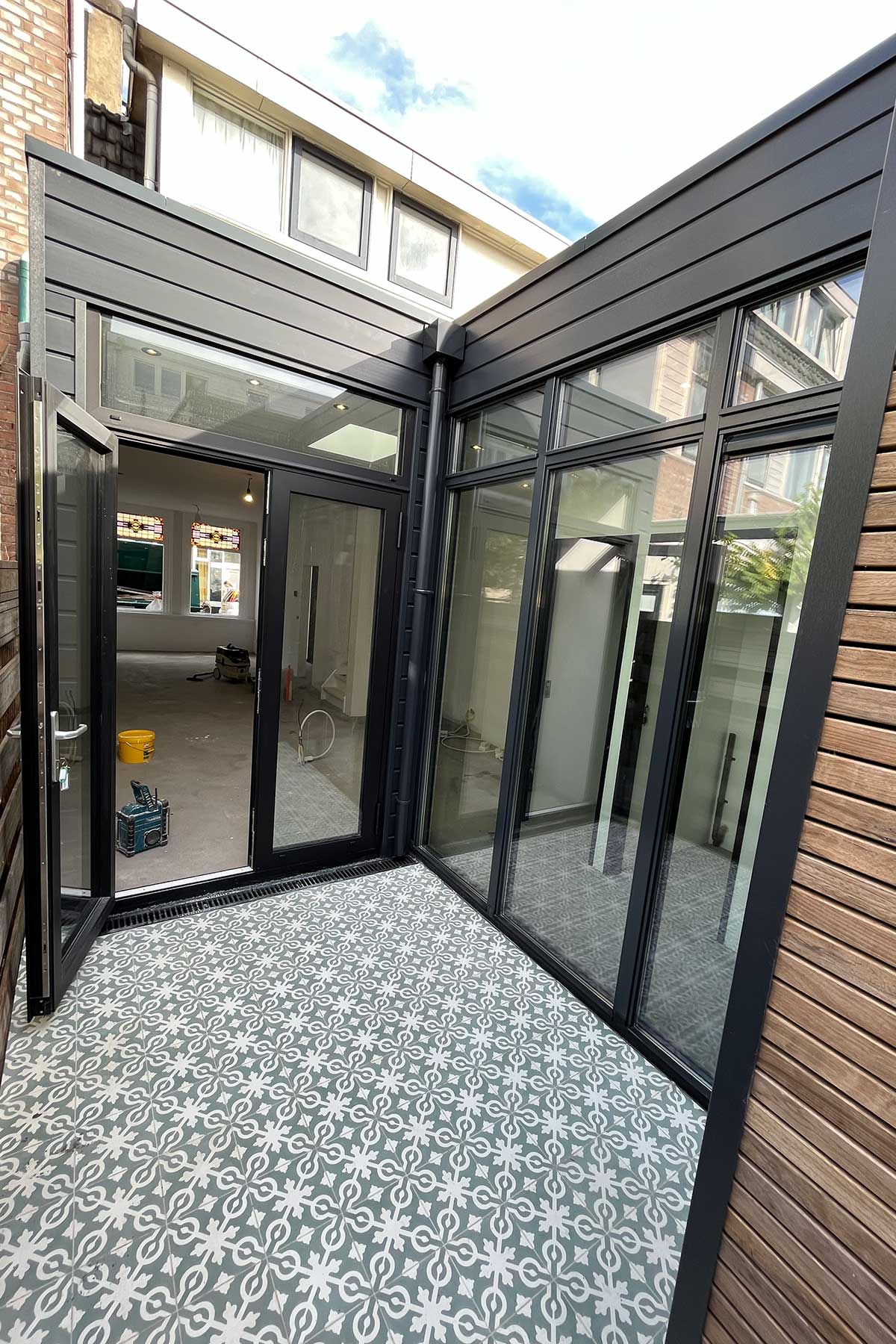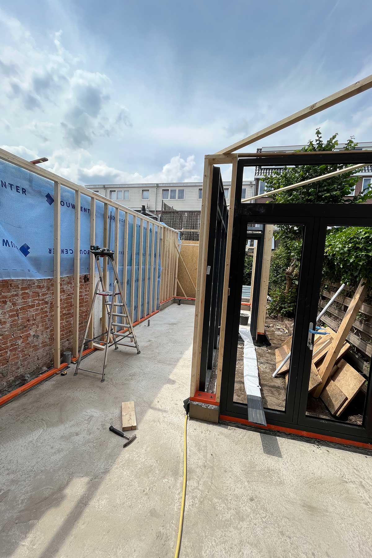 Woonkamervloer geïnstalleerd, aanbouw is bekleed met thermowood en kunststof rabat delen met houtnerf. In de aanbouw is één slaapkamer met doucheruimte, toilet, wasruimte, en keuken.