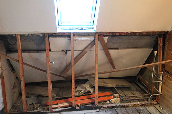 Dakconstructie verstevigd, groter dakraam geplaatst en nieuwe badkamer gerealiseerd.