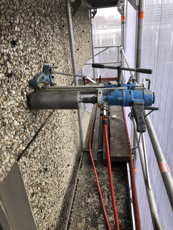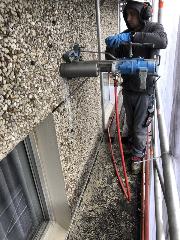 In opdracht van Rouwenhorst Isolatie 24000 gaten rond 24mm en 400 gaten rond 130 mm geboord tbv spouwmuur isolatie.