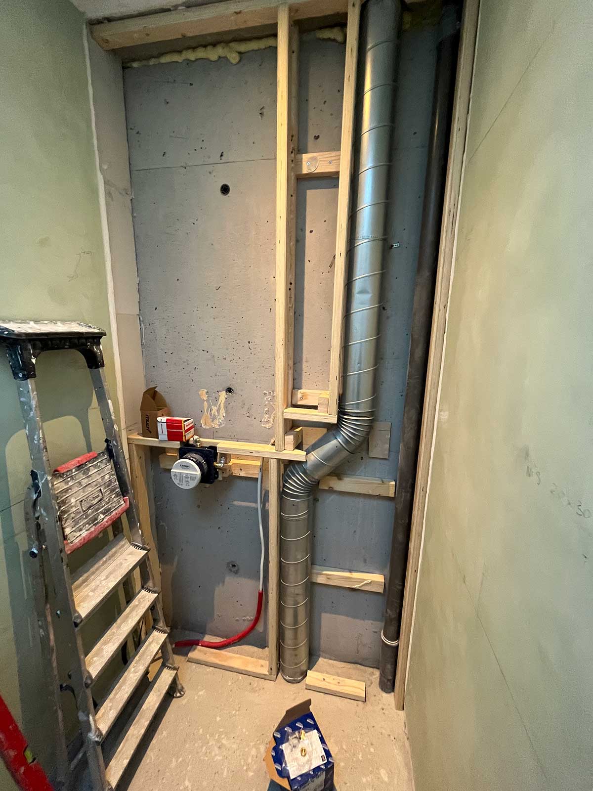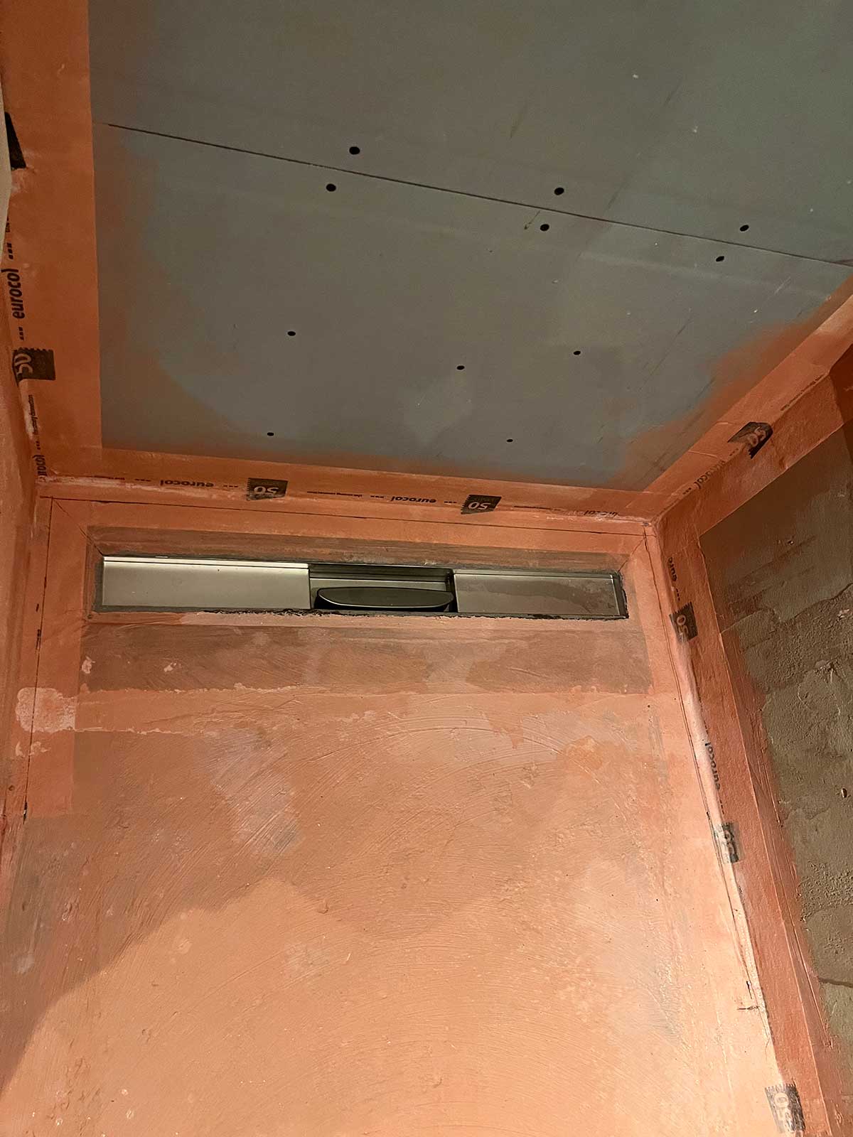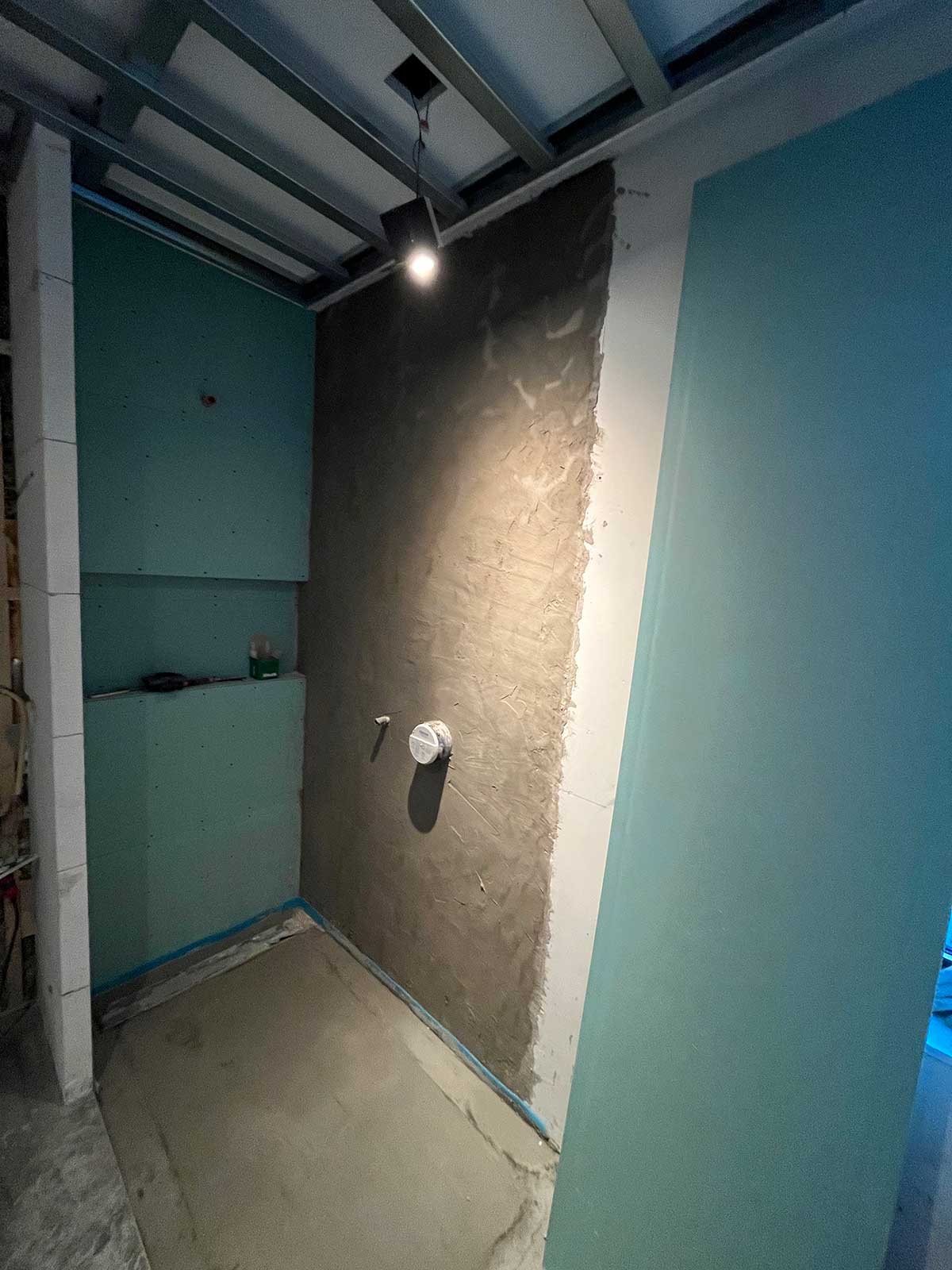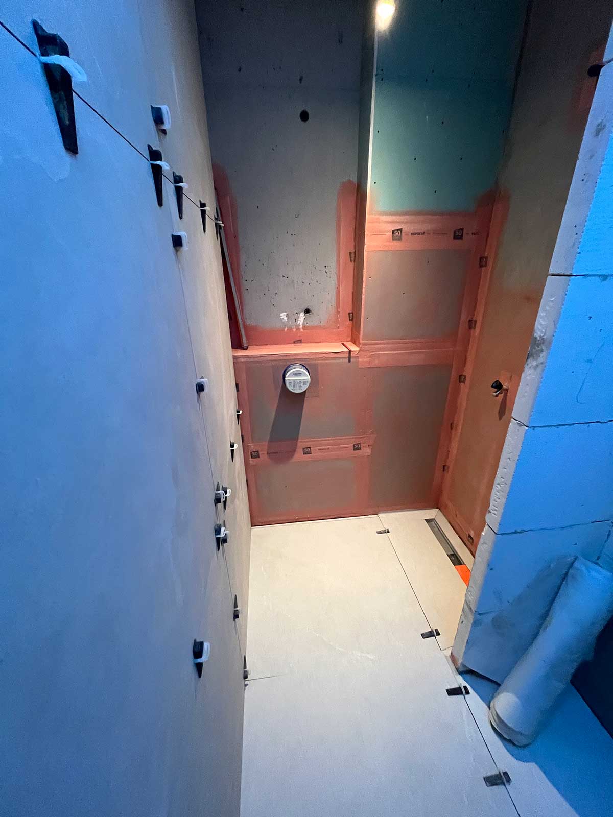 Twee badkamers vernieuwd, tegels afmeting 90 x 90 cm in combinatie met natuursteen