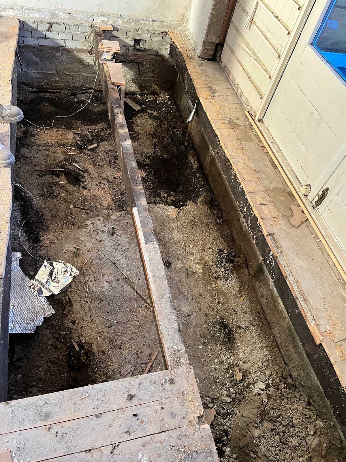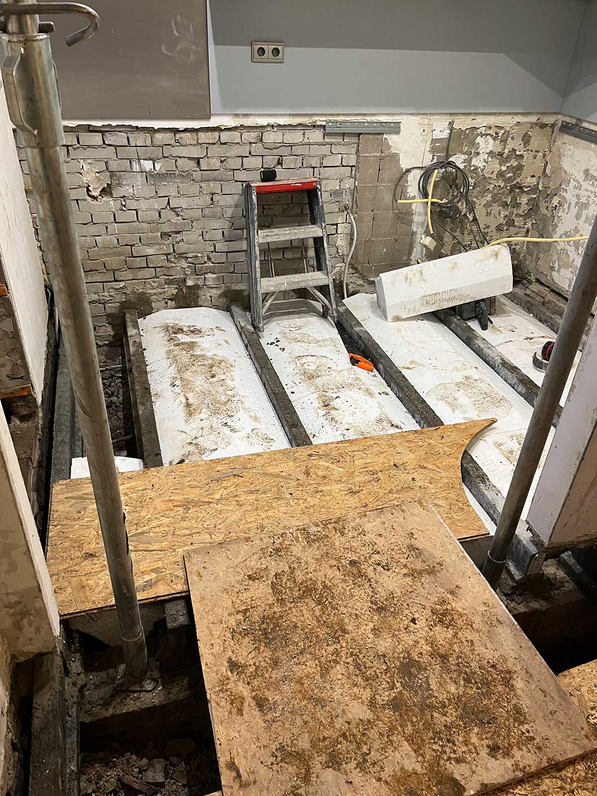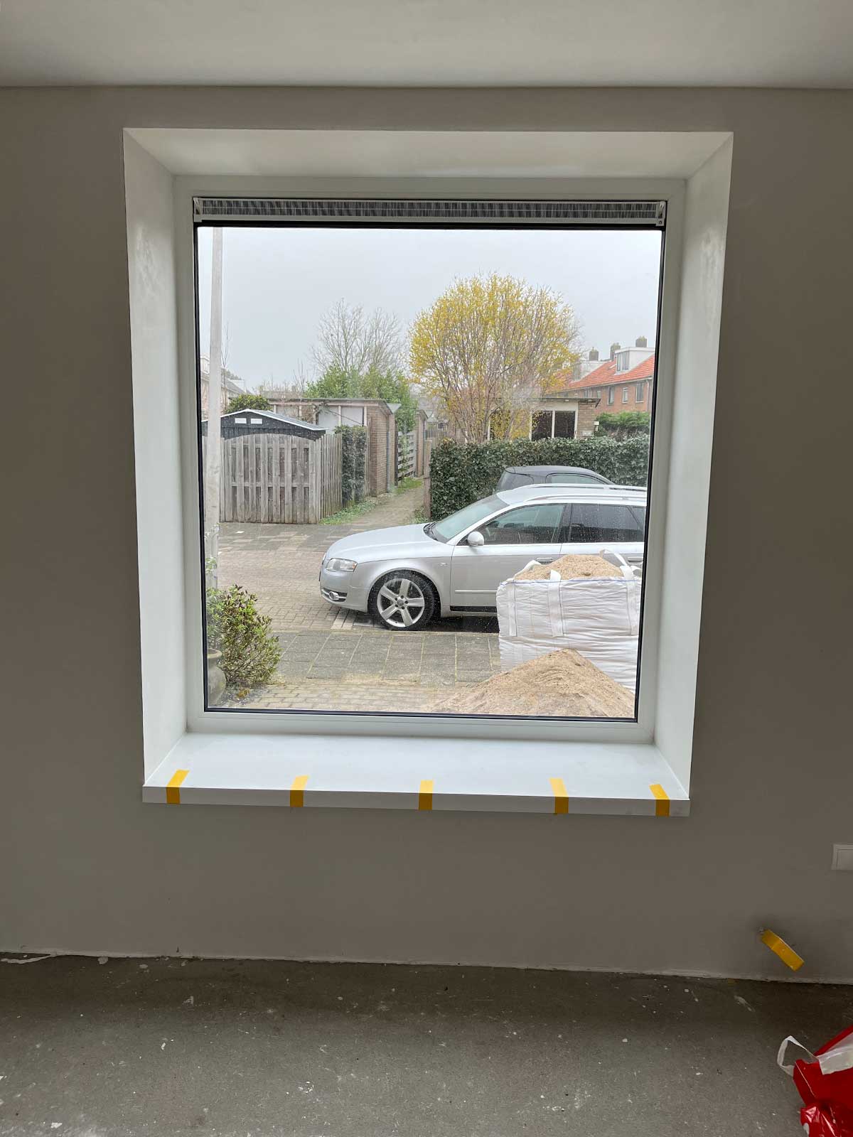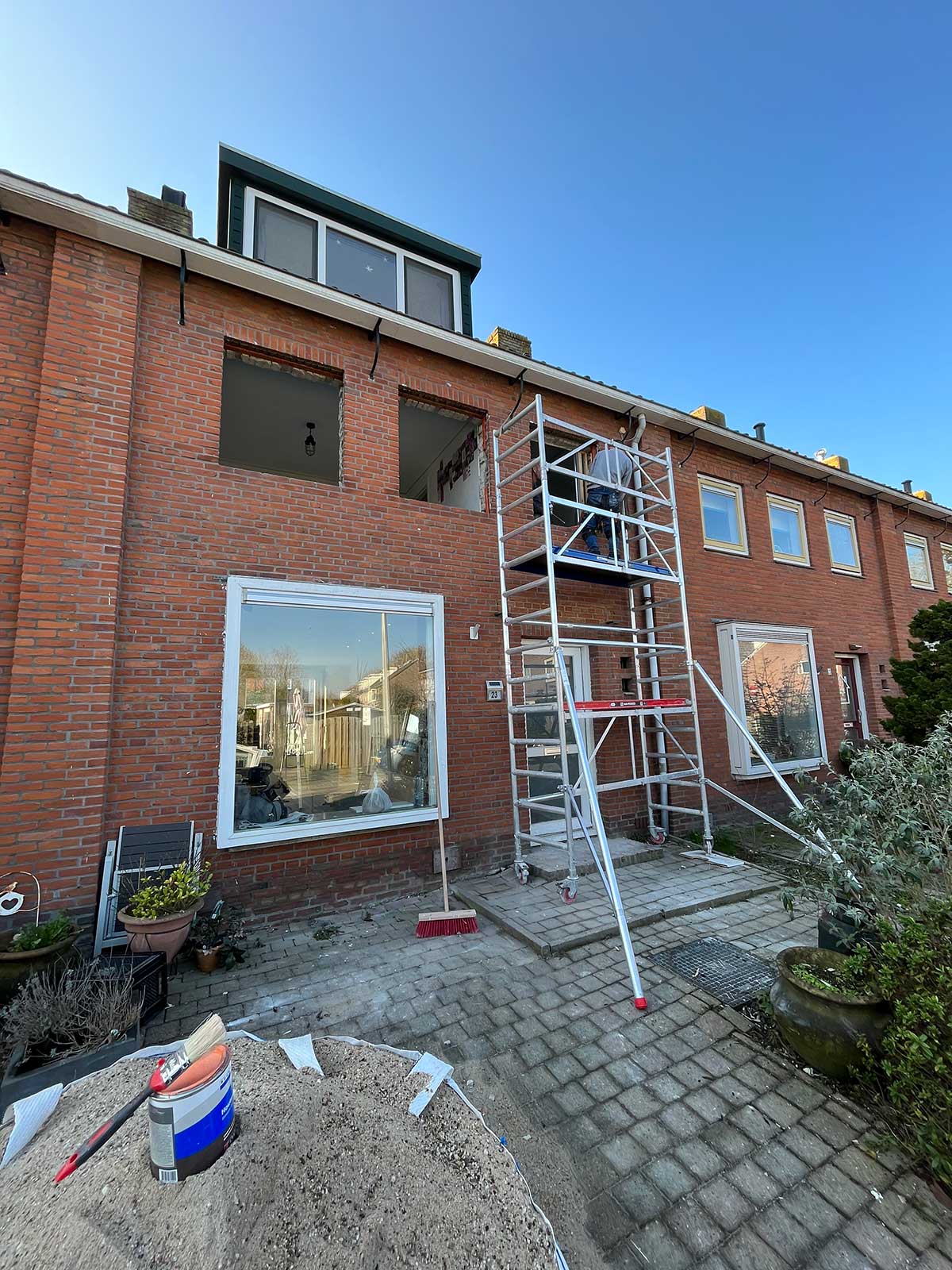 Vloer, plafond en ramen gesloopt. Geïsoleerde vloer met vloerverwarming en zandcementvloeren aangebracht. Elektra aangepast, nieuwe kozijnen geplaatst en alles gestuct.