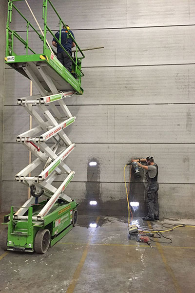 Op locatie beton ingezaagd + gaten in beton gemaakt zodat de heftruck de platen kon verwijderen.